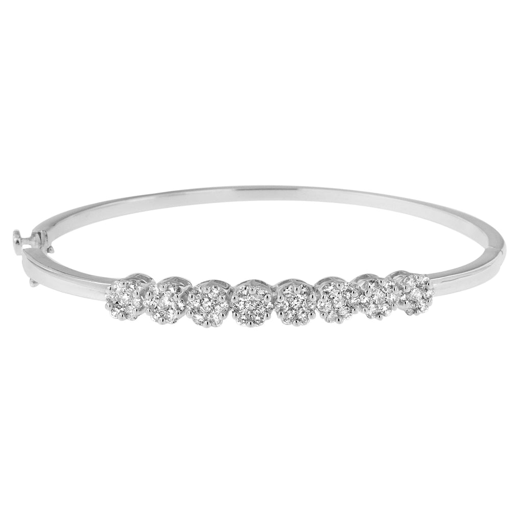 14K White Gold 1 7/8 ct. TDW Round Cut Diamond Floral Bangle (H-I, SI1-SI2)