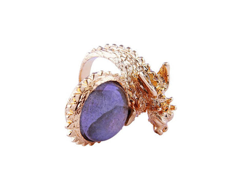 Dragon Ring with Natural Labradorite in 18k Gold Plated Brass